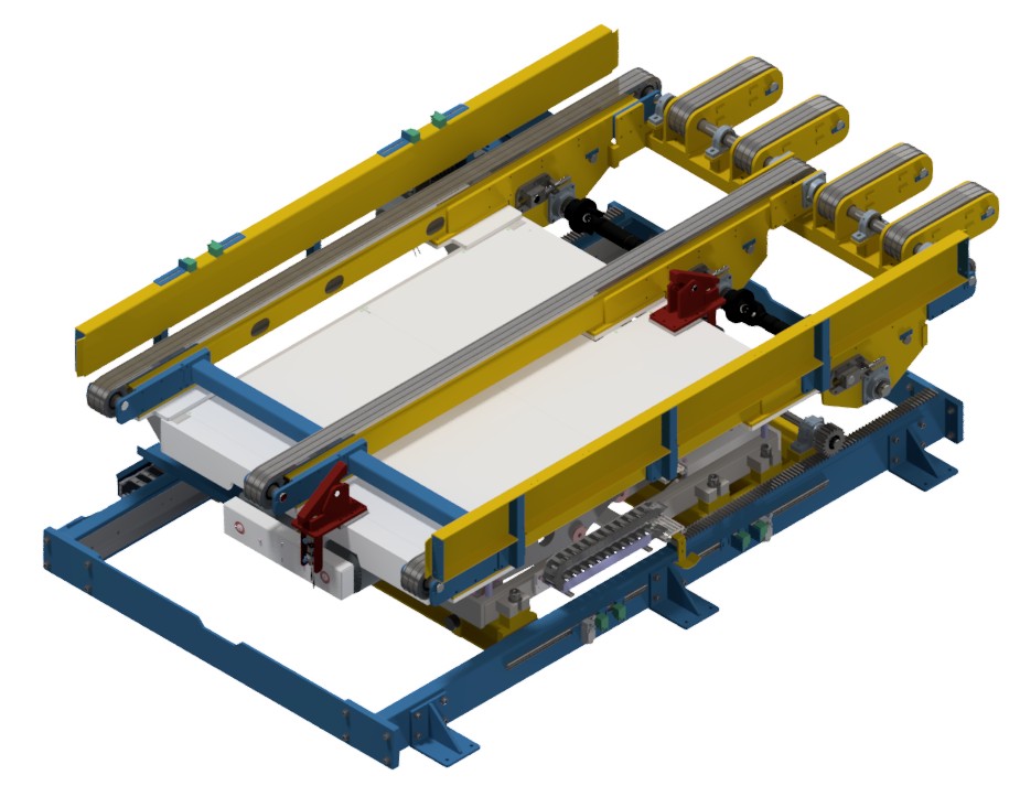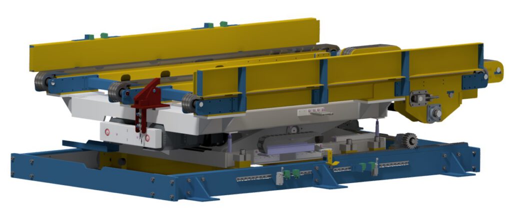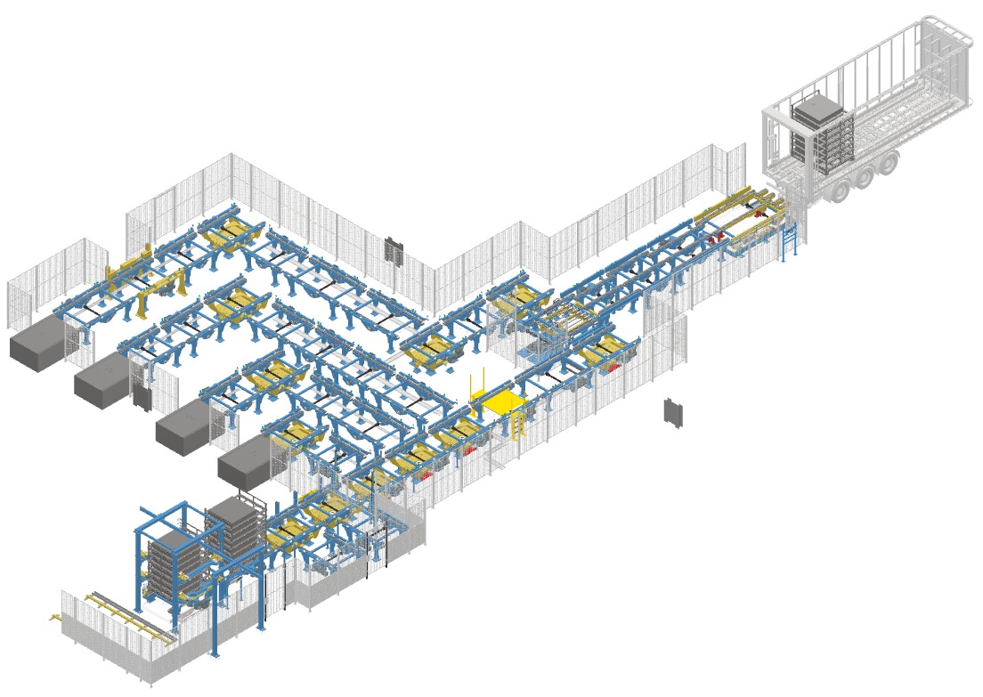 Voor Ford Keulen ontwikkelden wij samen met Apteg een volledig geautomatiseerde lijn voor het laden en lossen van vrachttrailers met batterijpallets tot 5.000 kg per batterij stack. De trailers worden via kettingtransport dat op een schaaftafel gemonteerd is en vervolgens gemonteerd op een verrijdbaar spoor automatisch de trailer lost en laad. Vervolgens worden de batterijen gesorteerd op type en grootte, gebufferd en tenslotte ontstapeld en aan de productielijn toegevoerd voor de Ford CX740 Explorer en Capri.