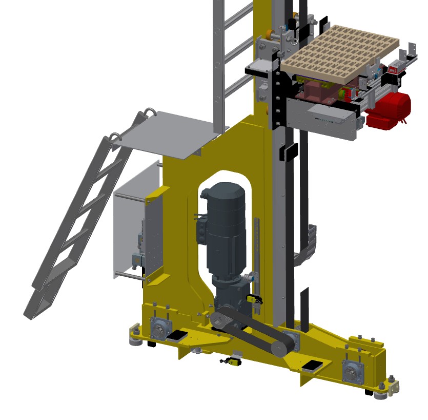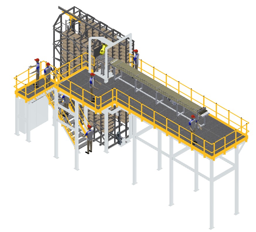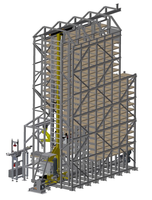 Samen met de Beumer Group ontwikkelden wij voor Harting een geautomatiseerd hoogbouwmagazijn voor het stockeren van custom Han Connector pallets. De connectoren worden via een invoerconveyor toegevoerd naar een handlingrobot, die ze in de voorziene posities op de pallet plaatst. Een shuttle transporteert de pallets vervolgens naar de toegewezen rackposities voor efficiënte en geordende opslag.