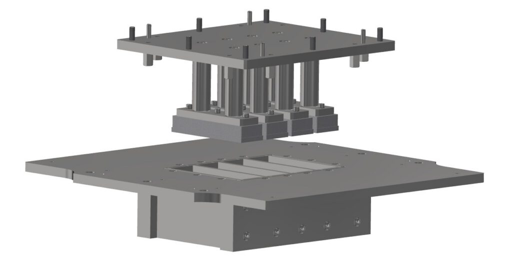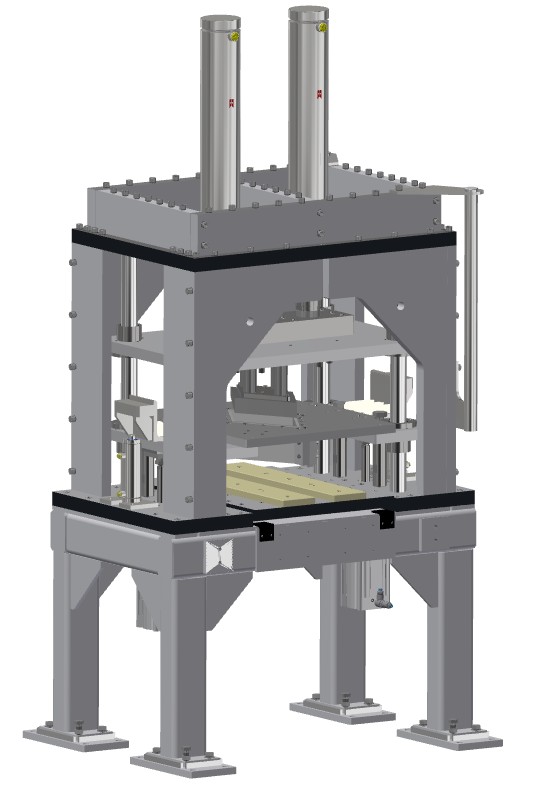 De pers beschikt over een instelbare persdruk en een bodemplaat met dempers en geïntegreerde trilmotoren. Deze zorgen voor een optimale vulling en verdichting van het materiaal in de mal, wat resulteert in een nauwkeurig en reproduceerbaar proces.